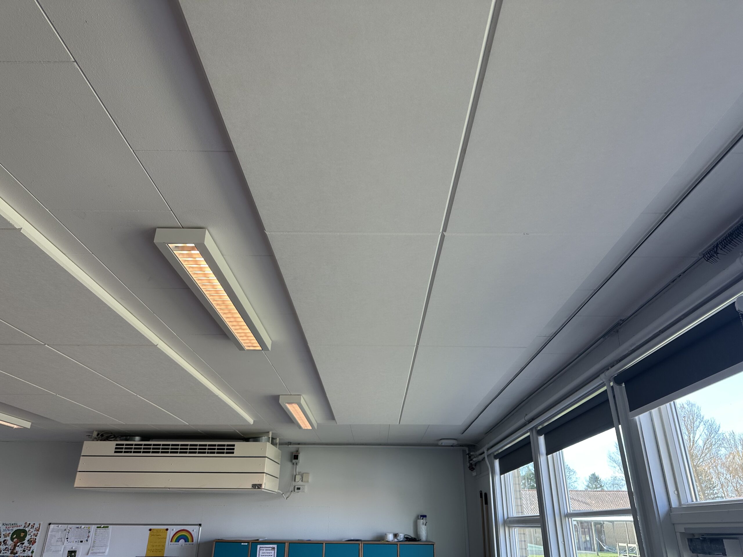 Dækning: Det anbefales at montere mindst 20-30% af gulvarealet i plader (loft eller væg) for optimal effekt